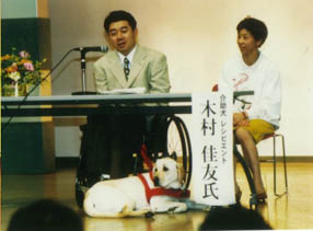 身体の不自由な人々に日常生活を助ける犬、介助犬育成はアメリカでは20年近い歴史 がある、現在千頭以上が活躍しているが、日本では3頭しかいない。その内の一頭、シ ンシアのトレーナー・矢澤さんと、一緒に暮らす木村さんから体験談を聞き、介助犬へ の理解を広めることを目的に講演会を開催。講演会のあとは、矢澤さんと木村さんを囲 み立食交流会も開催。今の介助犬認知の基礎がこの講演会から築かれたと言っても過言 ではないのでは。