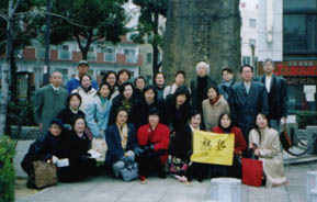 田結荘氏の解説に耳を傾けながら、ゆっくりと近松が歩いた歴史の道、道頓堀界隈を探訪。国立文楽劇場−二ツ井戸−自安寺−安井道頓碑−日本橋−相合橋−太左衛門橋−中座−竹本座跡−法善寺−竹林寺。